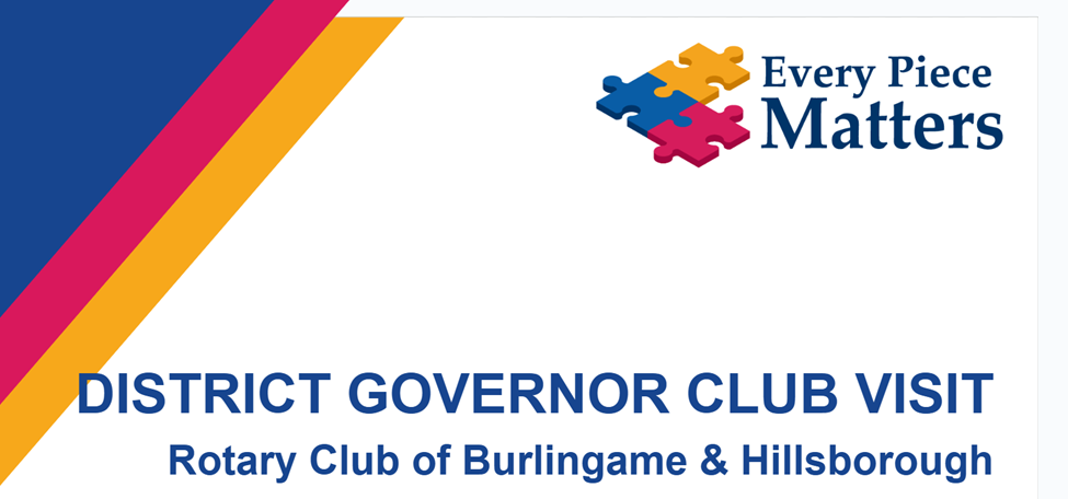 Visiting the club was San Mateo Rotarian, Michelle Privitera. Doug briefly introduced our District Governor, Mitone Griffiths.